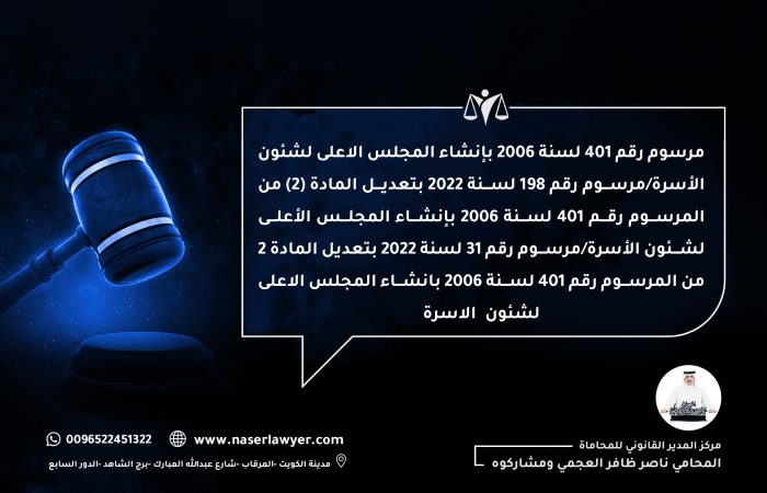 مرسوم رقم 401 لسنة 2006 بإنشاء المجلس الاعلى لشئون الأسرة/مرسوم رقم 198 لسنة 2022 بتعديل المادة (2) من المرسوم رقم 401 لسنة 2006 بإنشاء المجلس الأعلى لشئون الأسرة/مرسوم رقم 31 لسنة 2022 بتعديل المادة 2 من المرسوم رقم 401 لسنة 2006 بانشاء المجلس الاعلى لشئون الاسرة